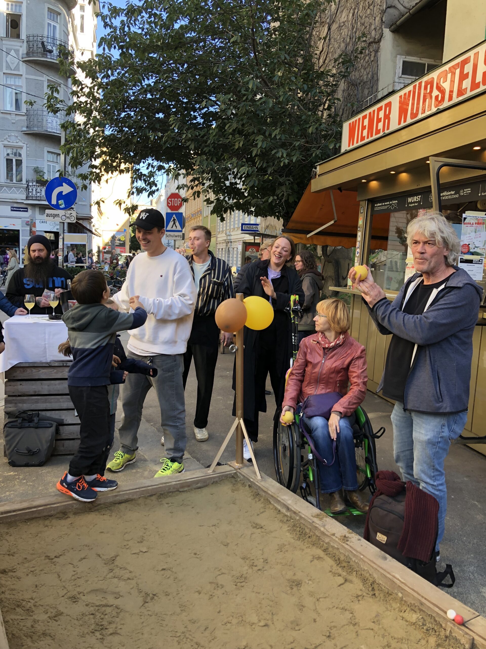 Am 23. September fand am Strozzigrund das Grätzlfest der Agenda Josefstadt statt. Anrainer*innen und Geschäftsleute kamen mit Künstler*innen und Feinschmecker*innen unter dem Motto „Es herbstelt am Strozzigrund“ zusammen. Beim Wiener Würstelstand fand das generationenübergreifende Bocciaturnier des Nachhaltigen ACHTSAMEN 8. statt, welches in einem Herzschlag-Finale mit glücklichen Gewinner*innen endete. Vielen Dank für die vielen Gespräche, interessanten Begegnungen und natürlich fürs Mitspielen.