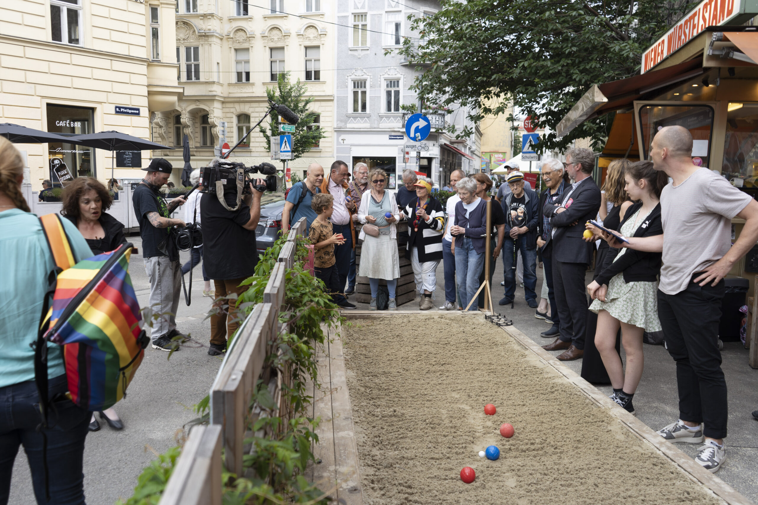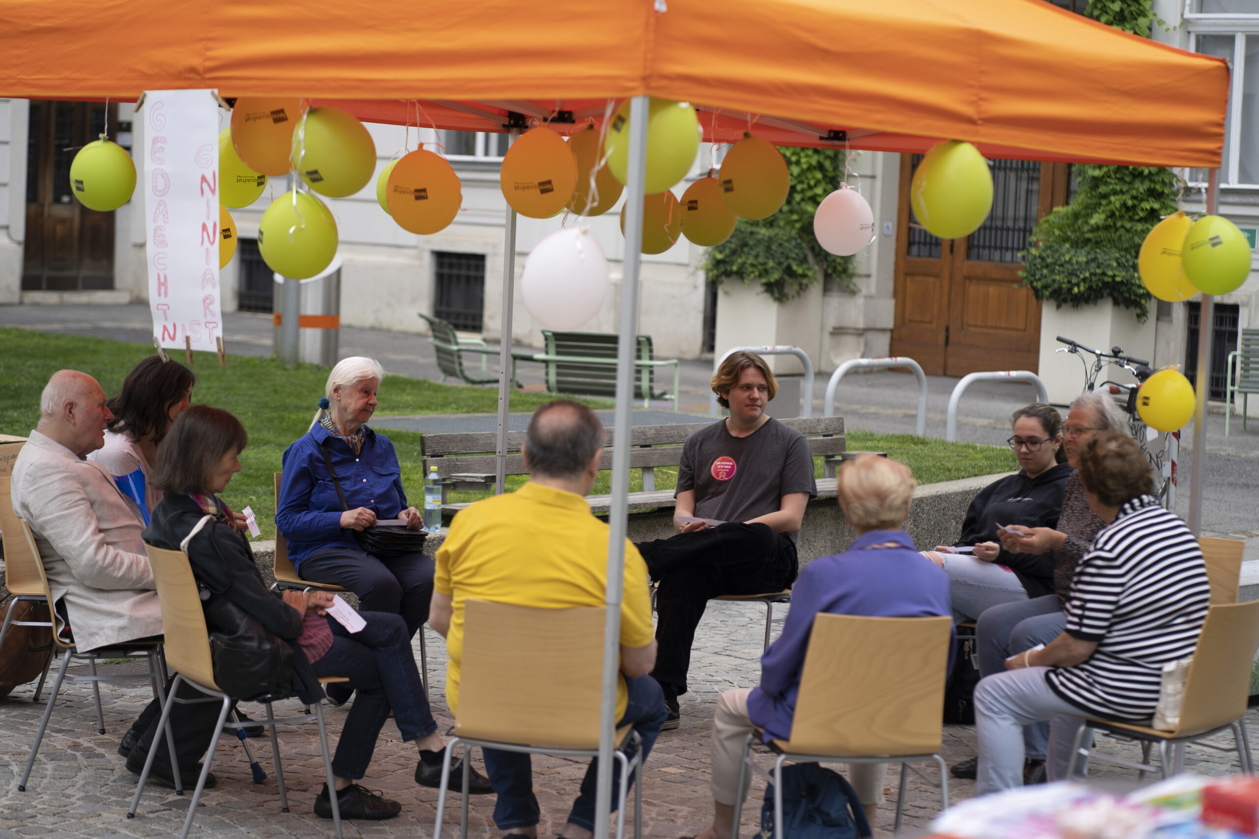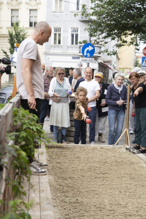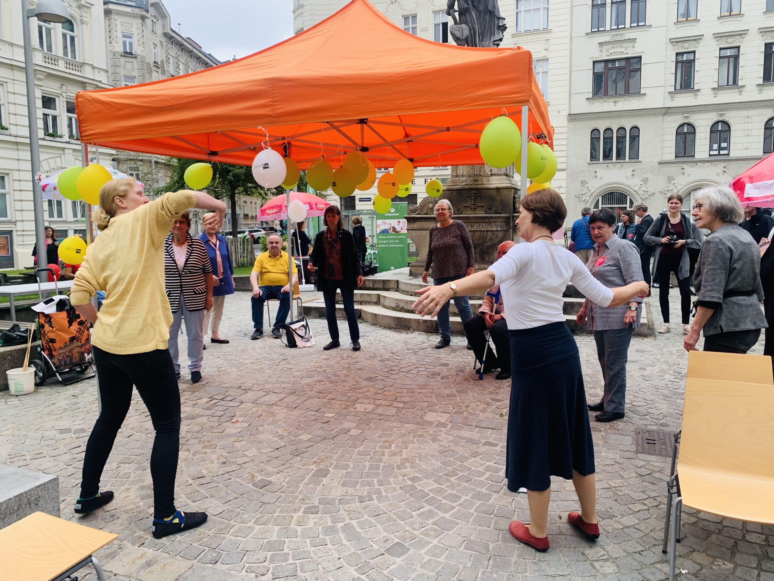Ein schöner Anblick: Wer am 10. Juni im Bezirk unterwegs war, konnte beobachten, wie viele Menschen mit einem Lächeln durch den Bezirk flanierten, sich begegneten, plauderten und weiterzogen. Den ganzen Tag lang kamen Nachbar*innen, Menschen mit Demenz, Hochbetagte, pflegende Angehörige, Familien, Senior*innen, politisch Aktive, Alt und Jung – mehr als 1.000 Josefstädter*innen und Interessierte – bei über 40 Stationen in der Josefstadt zusammen,  informierten sich, spielten Boccia, bestaunten Kunst und töpferten selbst. Oder sie erkundeten Entspannungsmöglichkeiten, sangen miteinander, tanzten, erzählten und hörten zu.
