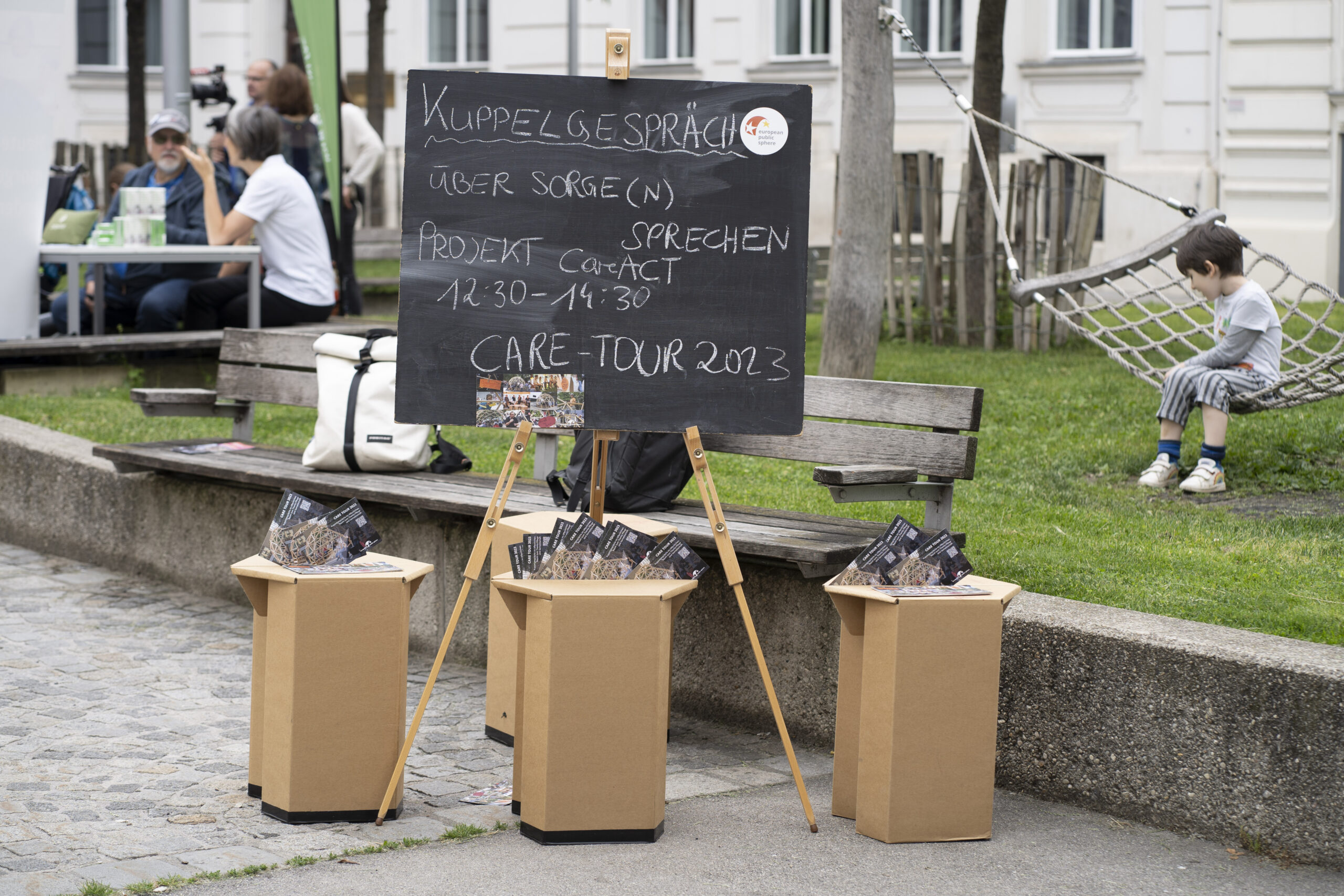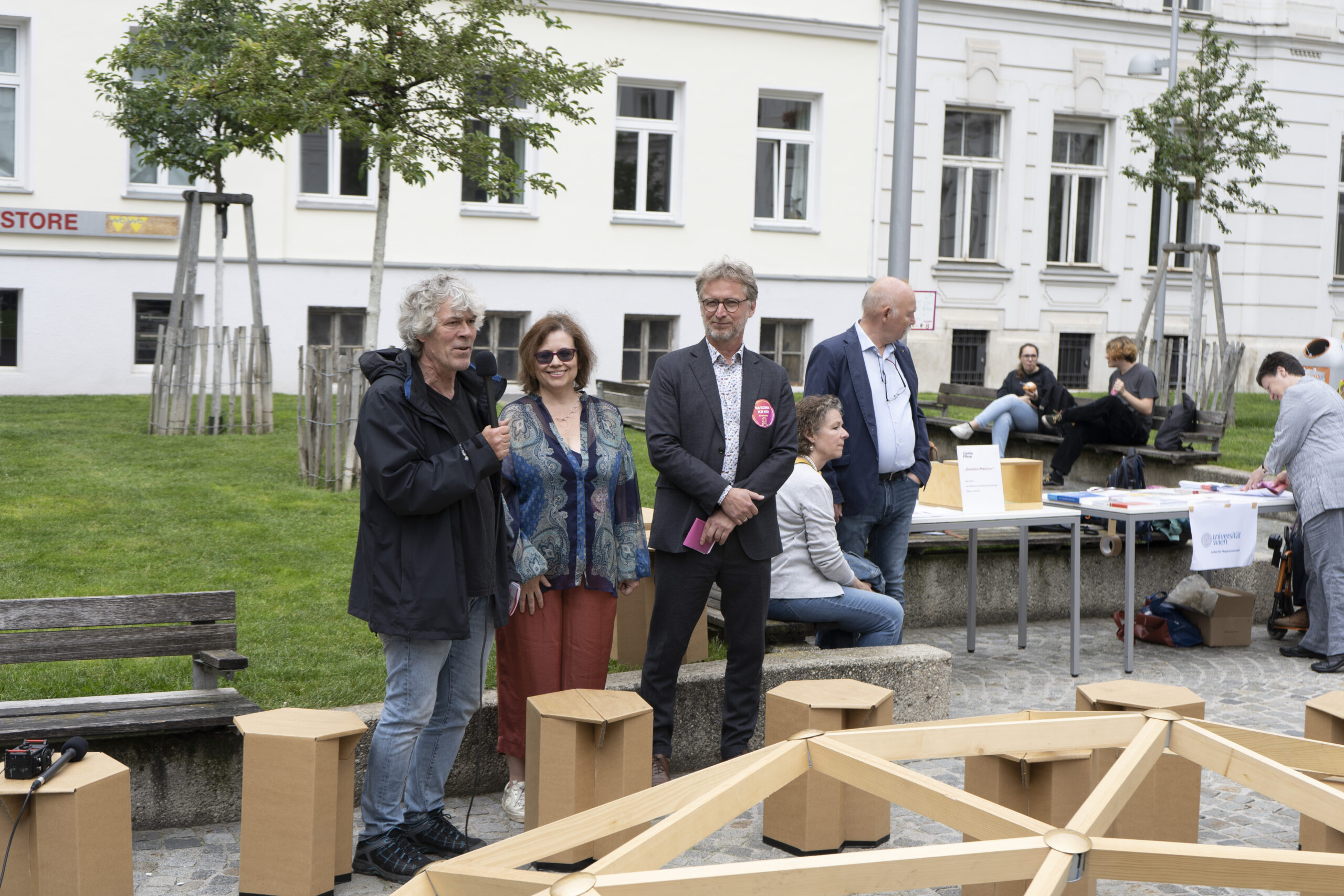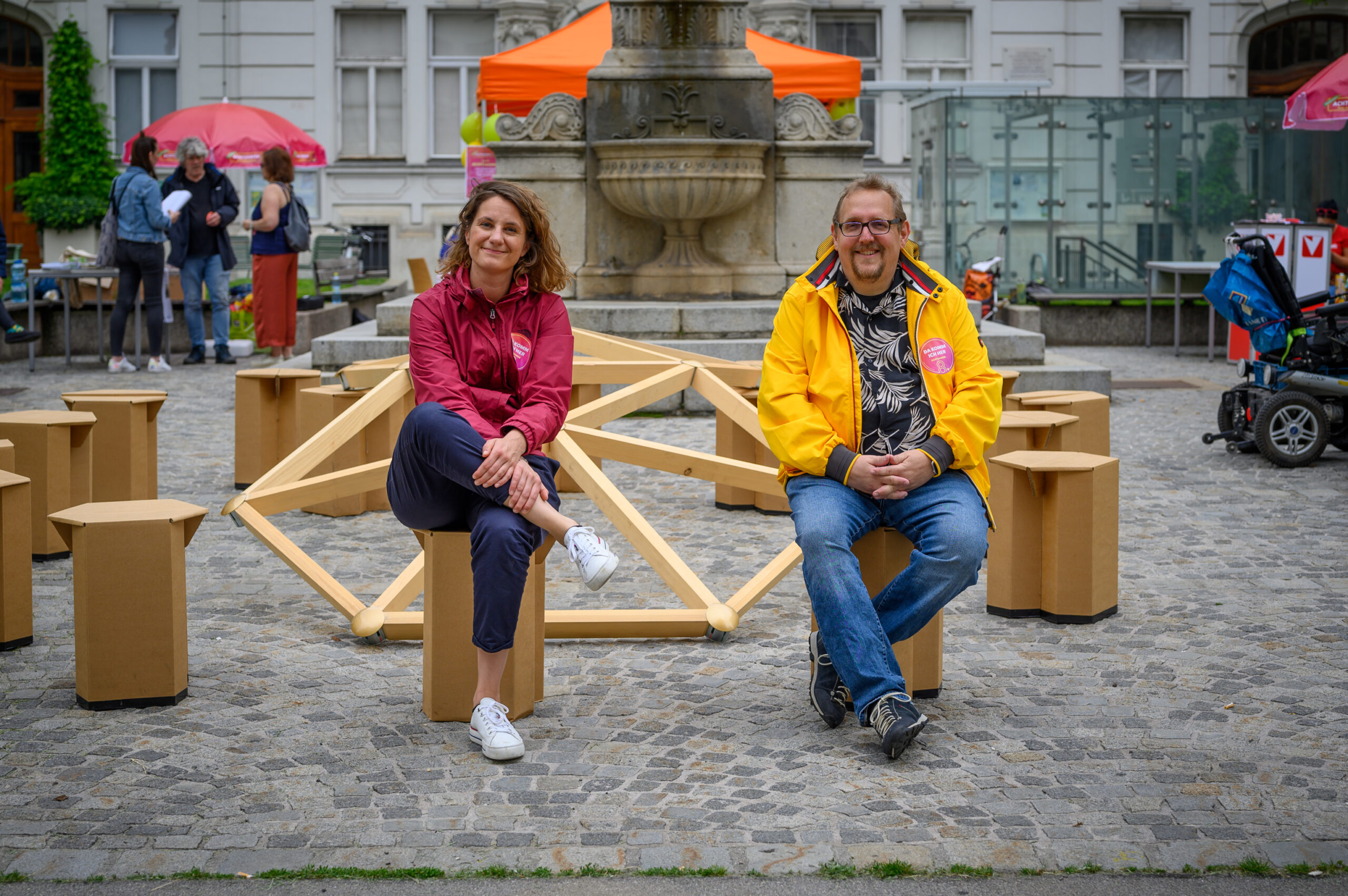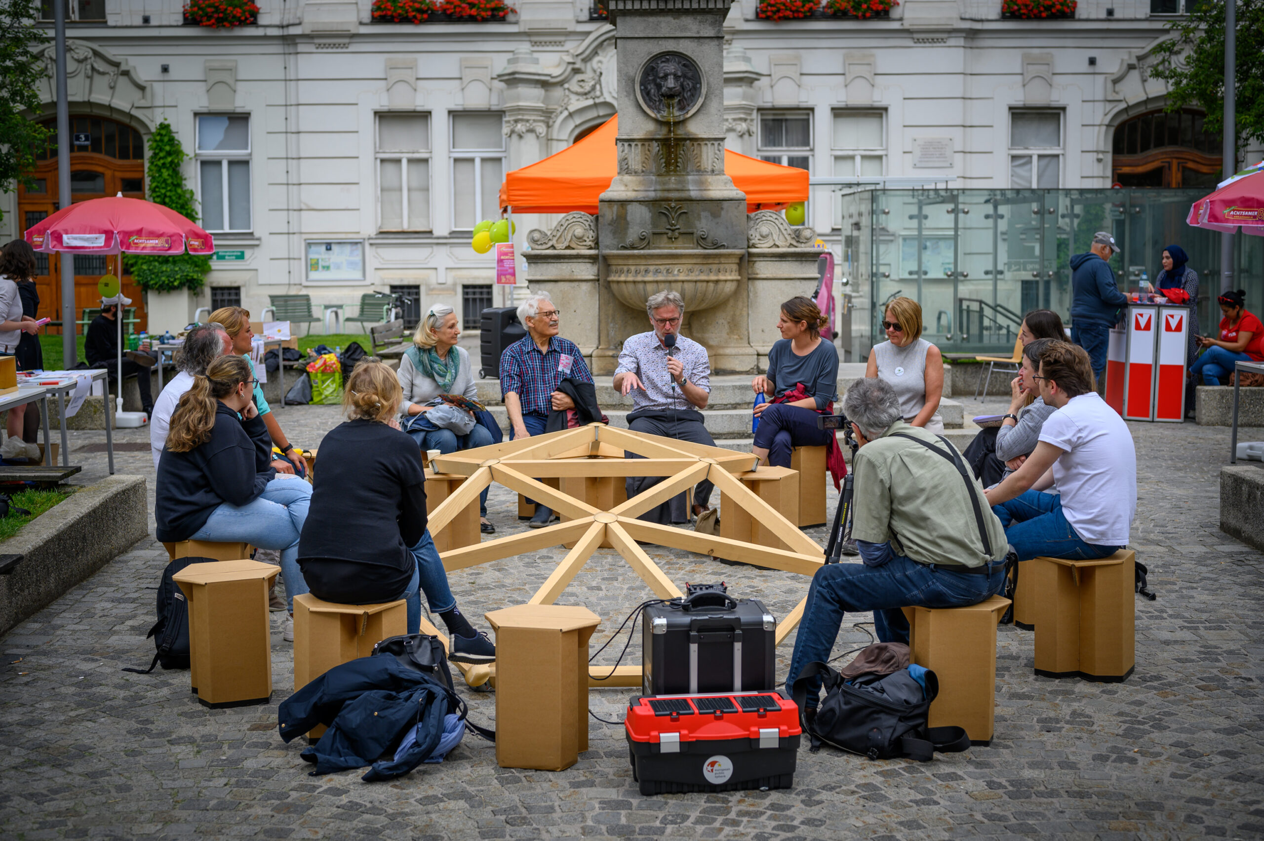 Ein schöner Anblick: Wer am 10. Juni im Bezirk unterwegs war, konnte beobachten, wie viele Menschen mit einem Lächeln durch den Bezirk flanierten, sich begegneten, plauderten und weiterzogen. Den ganzen Tag lang kamen Nachbar*innen, Menschen mit Demenz, Hochbetagte, pflegende Angehörige, Familien, Senior*innen, politisch Aktive, Alt und Jung – mehr als 1.000 Josefstädter*innen und Interessierte – bei über 40 Stationen in der Josefstadt zusammen,  informierten sich, spielten Boccia, bestaunten Kunst und töpferten selbst. Oder sie erkundeten Entspannungsmöglichkeiten, sangen miteinander, tanzten, erzählten und hörten zu.